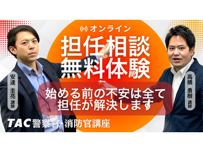 TAC警察官・消防官講座の担任の安達 圭亮 講師と高橋 勇樹 講師が、警察官や消防官(消防士)、皇后護衛官や海上保安官を目指すあなたの相談に乗ります!