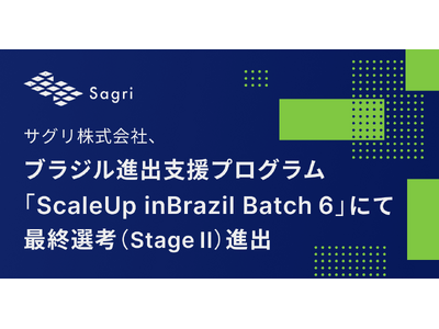 サグリ株式会社(本社:兵庫県丹波市、代表取締役:坪井 俊輔、以下「サグリ」)は、ブラジル貿易投資促進庁(ApexBrasil)およびブラジル・プライベートエクイテイ・ベンチャー・キャピタル協会(ABVCAP)が、JETRO(日本貿易振興機構)、フィンランド外務省(Ministry for Foreign Affairs of Finland)、イスラエル貿易投資庁(Israel Economic Mission to Brazil)を含むグローバルパートナーと連携して主催するスタートアップ支援プログラム「ScaleUp inBrazil Batch6」において、最終選考企業(Finalists)として選出され、Stage II(Immersion Experience)「(以下Stage II)」への進出が決定したことをお知らせいたします。