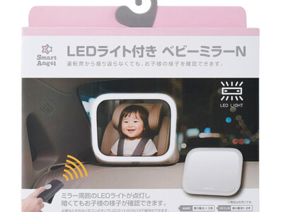 本商品は、夜間やトンネル内など車内が暗い環境でもお子様の表情や様子を確認しやすくするため、やさしい光のLEDライトをミラーの全周に搭載しました。さらに、運転席から操作できるリモコン付きで、安全性と利便性を高め子育て世帯のカーライフをさらに快適にサポートします。