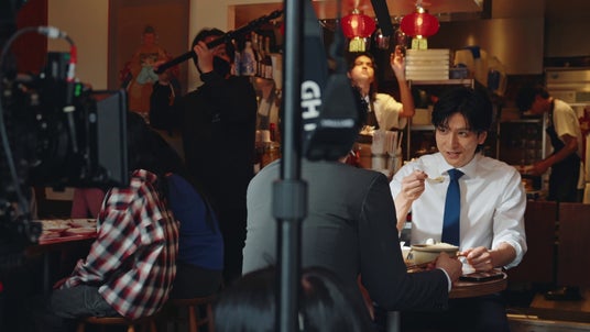 今回のCMは2026年3月に東京都内のおしゃれな町中華で撮影されました。テーブルには、この町中華で実際に提供されている人気メニューのえびチャーハン、餃子、麻婆豆腐、中華そばといった料理がテーブルに並び、それぞれの料理を頬張りながら撮影が進みました。