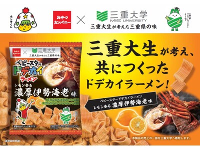 第23弾は、インターンシップで三重大生が考案!三重県の特産品を活かし、三重にこだわった『ベビースタードデカイラーメン(レモン香る濃厚伊勢海老味)』を、2026年5月4日(月)より全国にて期間限定発売します。