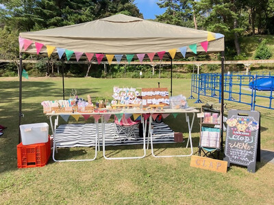 青空の下、雑貨やグルメが並ぶ平尾台の屋外マルシェ(イメージ)