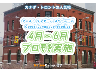 ネイティブスピーカーと回数無制限のオンライン英会話サービス「ネイティブキャンプ英会話」を展開する株式会社ネイティブキャンプ(東京都渋谷区 代表取締役:谷川国洋)は、海外留学エージェントサービス「ネイティブキャンプ留学」において、カナダ・トロントの語学学校Quest Language Studiesにて、4月~6月プロモーションを実施いたします。