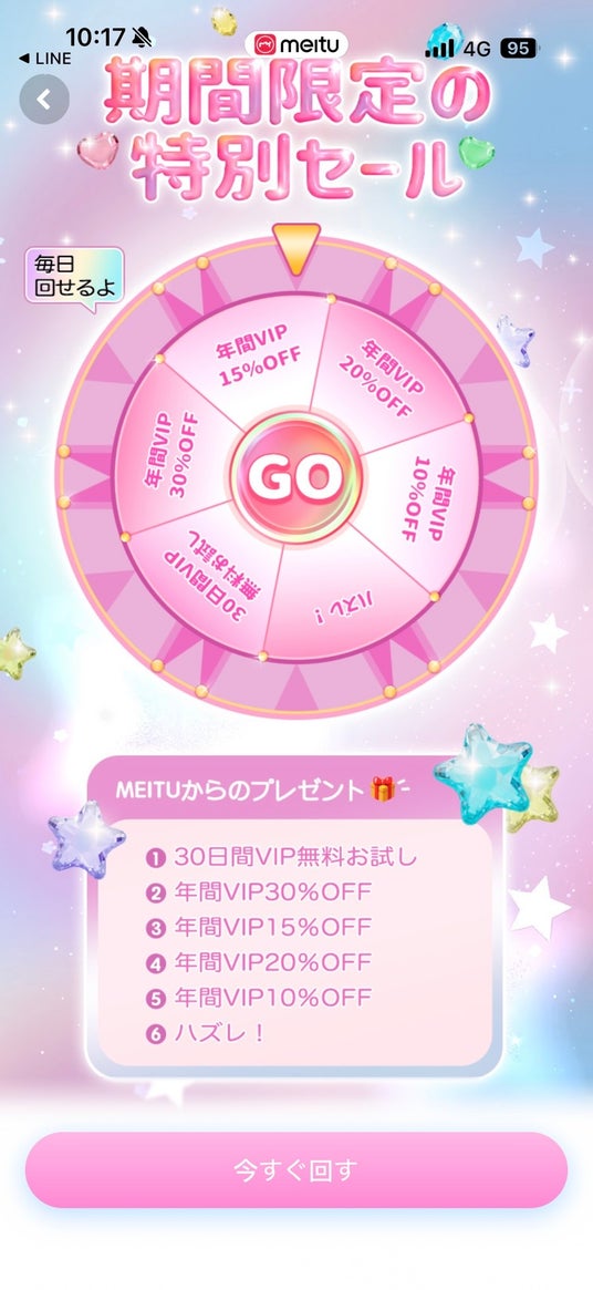Meituは、ゴールデンウィークに合わせて、アプリ内で毎日1回参加できる期間限定のルーレットイベントを開催いたします。